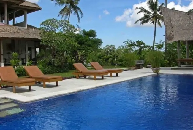 This ubud villas rental , Ahn Villa is a fully staffed home with 3 generous bedroom suites in its own substantial tropical gardens. There is an enticing infinity pool of the deepest blue, that is the perfect place from which to take in the lush green surrounds. The location is spectacular, at the end of a small village in the ancient region of Pejeng, just outside Ubud. The full time staff of 3 includes a night watchman for added security.
