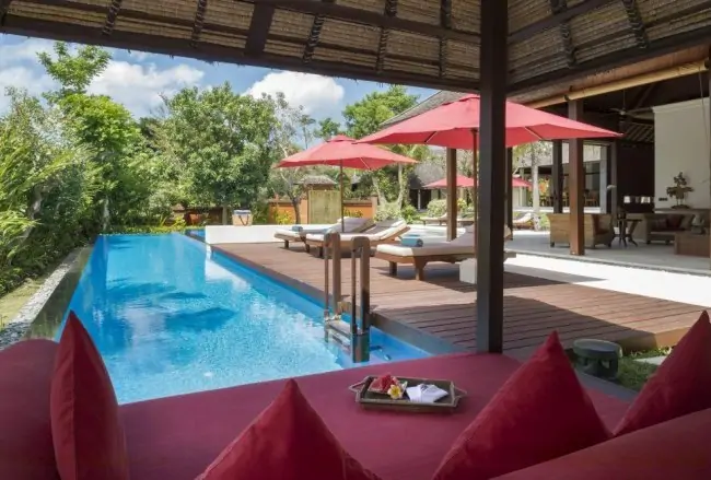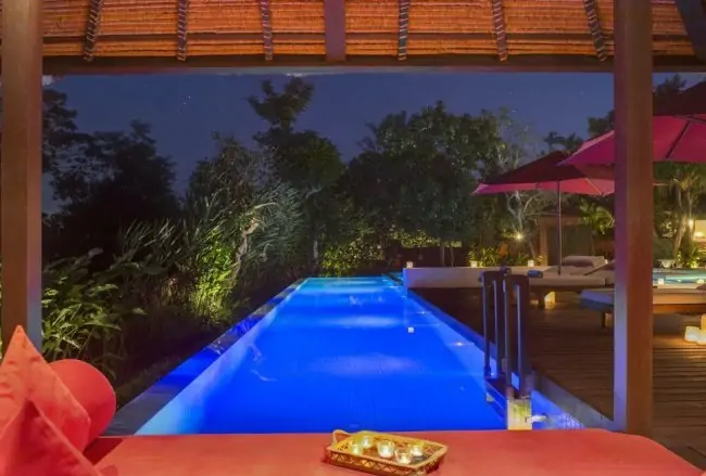 Astika Toyaning Villa which means beautiful water, and Astika means beauty, simple and minimalist and Toyaning, a clean fresh water used irrigation rice fields. This villa bali luxury of Toyaning Villa, offers a private a 20 meter lap pool and 10 meter square pool with all 4 air-conditioned bedrooms facing the pool and large tropical gardens. All bedrooms are ground level. The living area of Astika Toyaning Villa is designed in the open style concept. The beautiful traditional single roof of each of the buildings mixes traditional Balinese architecture with modern design to this area of Canggu