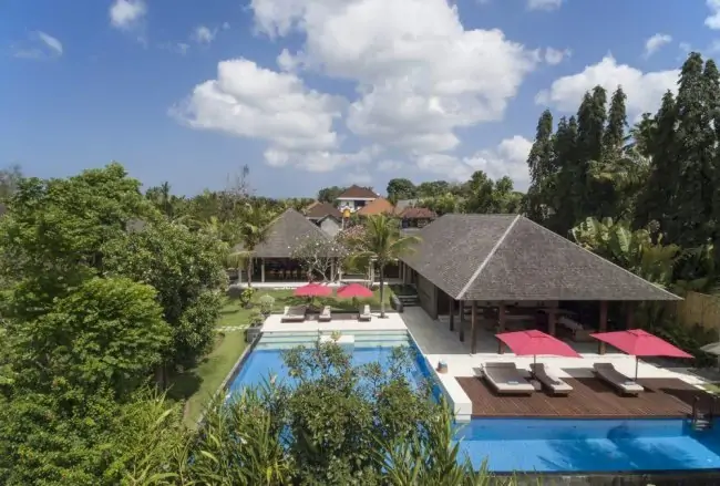 Le Meridien Hotel and the famous Tanah Lot Temple are a scenic 15 minute drive to the north, as is the world renowned Nirwana Bali Golf Course, designed by Greg Norman. The local beach, Pantai Pererenan, is a short 5 minute drive from the villa and is particularly popular with international surfers.