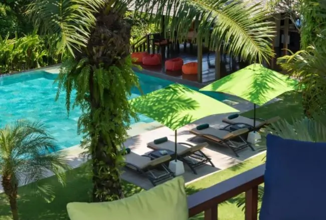 Bendega Villas contemporary design is enhanced, outside and in, with the highest quality materials, all chosen for their natural beauty and durability. Thoughtfully chosen Balinese and Javanese sculptures, cabinets and artefacts – many of them antique – as well as bright floral fabrics and custom-printed traditional ikat textiles bring the stylish dark-wood furniture to vivid life. State-of-the-art facilities include a Sonos digital music system that can be programmed to match musical moods in several different ‘zones’, a modern kitchen, satellite television and DVD players and air conditioning in all the indoor areas.