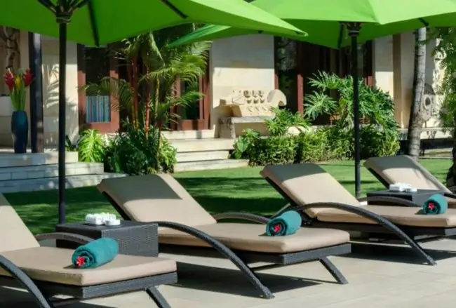The extensive gardens of this Canggu Villas Bali, surrounding Bendega Nui are very special, and make an idyllic setting for a wedding or other special celebration. Lawns are dotted with frangipani, oil palms, jasmine, yuccas, African tulip trees and an abundance of tropical fruit, and feature several serene, koi-filled ponds.