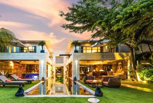 This Bali villa has 5 bedrooms, 5 bathrooms and 1 guest toilet, spread over 2 levels offers a lot of privacy, a wonderful lawned garden with trees and a large wonderful pool. Its comfort and the vicinity of the beach, places to shop, sports activities and places to go out make this an ideal villa to celebrate your holidays with family or friends.