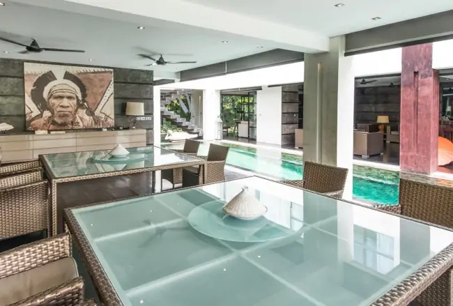 - Fully equipped kitchen with trained Butler available to prepare foods from the Villa menu, Chef available by notice 1 day before (snacks to 5 course dinners)