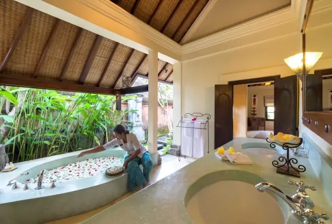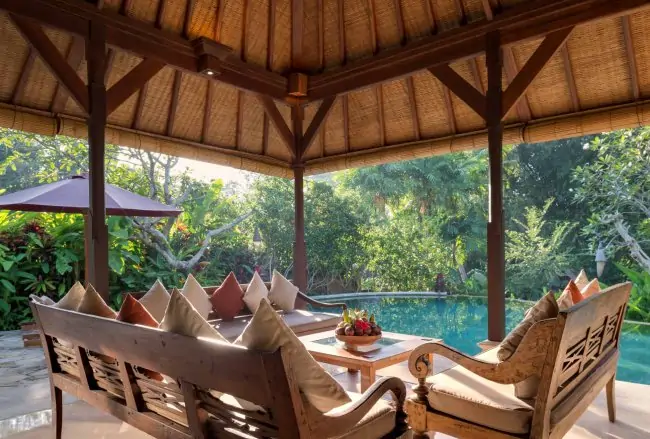 In here you could experience the real island Bali which rich in greenery, surrounded by the beautiful sea and enshrining a number of Gods, a paradise space filled with flowers and greenery with pure and fresh wind blowing it through. Waking up with the chirping of birds in the morning and taking a nap in a deck chair in the afternoon. It is the candlelight that begins to light up fascinatingly in the evening when the sky and the sea are brim with the sunset color. The surrounding tender nature characteristic in serenity of a forest and arousing comfort and ease with time passing so slowly may make you feel liberated from daily chores and relaxed in body and soul. Enjoy yourself to your heart’s content during stay in our villa, forgetting routines and punctuality.