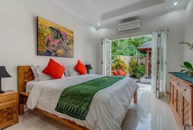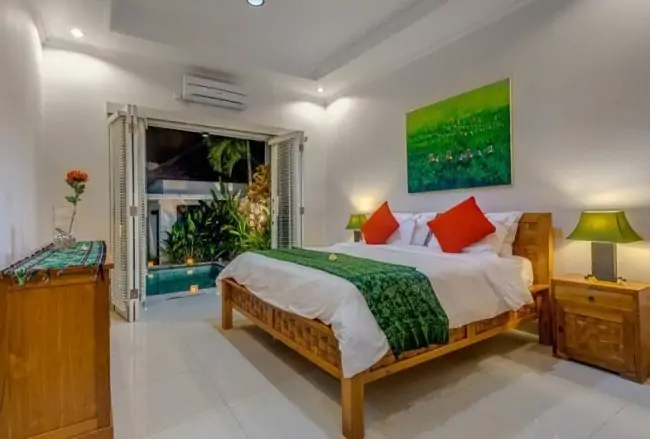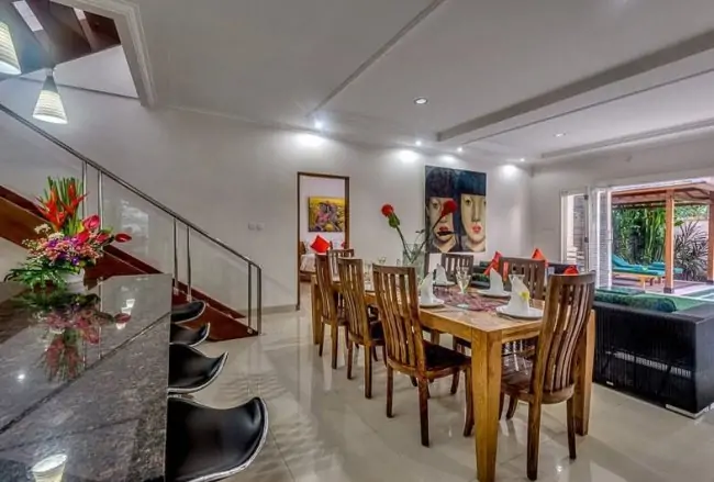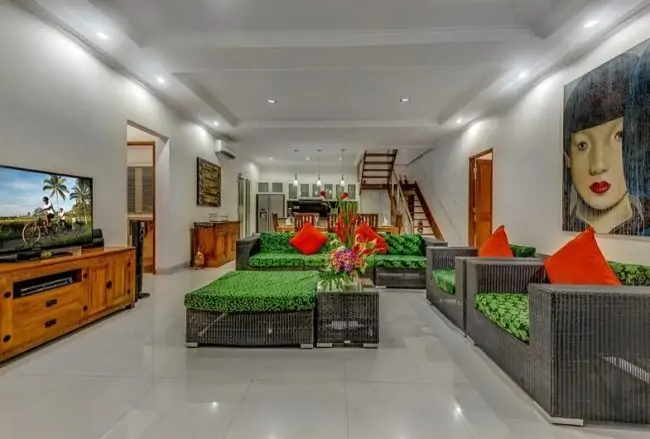 The stylish Jazz Villa of 4 and 3 Bedroom villa will suit large families or groups of friends with two separate and spacious living areas, large bedrooms all with own bathroom, and tropical garden with private pool. Located in Seminyak area about 25 minutes driver from Airport. This Seminyak villas rental of Jazz Villa located approximately 3-5 minutes walking distance to Hu’u, Petitenget Beach and Seminyak square can easily be reached within 5 minutes drive