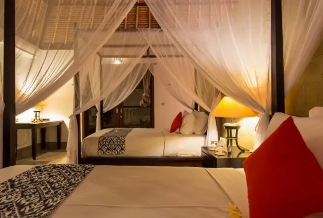 Each of room equipped with 32” LCD Television with International Channel. Except Master Bedroom, others bedroom has their own plunge pool just cross their door. Master Bedroom itself has own separate living room. En-suite bathroom is available with hot and cold water for every bedroom. Each of bathroom in Karang Nusa equipped with Bathtub. The Master Bedroom is using Double King Size Bed. Rest of bedroom is using 2 Single King Size Bed with mosquito net. High Speed Wi-Fi Connection is always available in every single inch of The Karang Nusa.