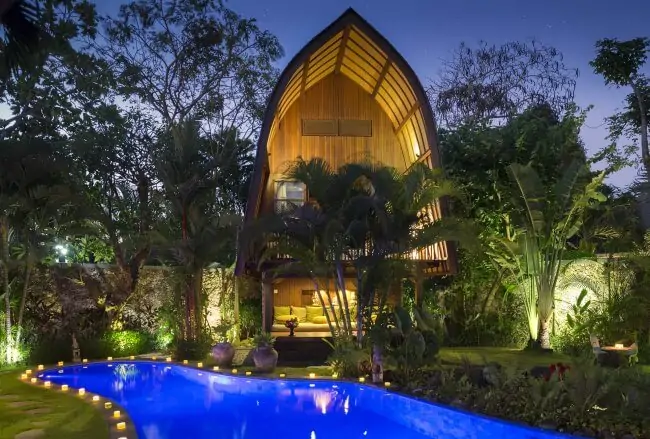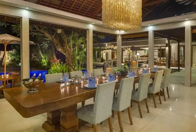 The majestic, five-bedroom Seminyak villa Lataliana I was built in 2011. This exceptional property blends stylish modern architecture with custom-made furnishings crafted from the century-old recycled timbers of a traditional Indonesian phinisi schooner. With its spacious rooms, large free-form swimming pool, historic joglo balé pavilion, dazzling designer chandeliers, soothing antique water features and high-tech facilities including a pool table; Lataliana I is classy and chic. It also presents an abundance of space, making it the perfect venue for weddings.
