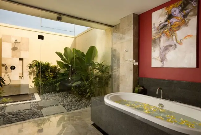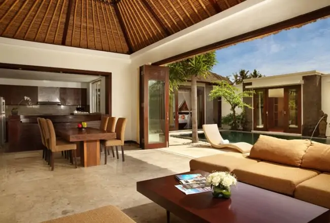 Mahagiri Villas has been designed to harmonize with the surrounding environment and draws inspiration from the elements of nature. Indigenous materials such as local stone, hardwoods and traditional thatching have been used to create villas in Bali that are not only visually appealing but also supremely comfortable.