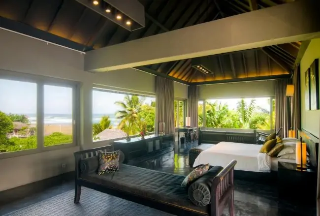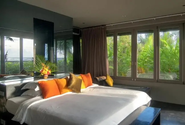 Mahatma House is owned by a Spanish model and a fashion designer and their sense of style and sophistication shines throughout the villa, from the fabulous black interiors to the incredible array of Asian antiquities.