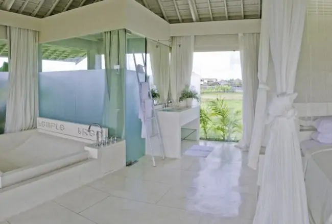 Puro Blanco offers 4 ensuite bedrooms with bathrooms on 2 levels designed and modern tropical shades of white. The spacious outdoor living area on the second floor overlooks the rice fields where you can hear the soothing sounds of the ocean.