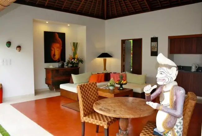 Saba Villas Arjuna located within one kilometer of the sweeping beach at Batubelig and minutes drive from surf break of Berawa (via a different road, or a walk along the beach) between Seminyak and Canggu. An intimate one bedroom Villa of Saba Villas Arjuna, comprises with an open-side living and dining pavilion complemented by a well equipped kitchenette, separated by antique double doors from spacious bedroom.