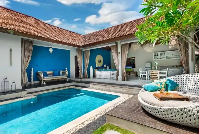 Sea Villa Seminyak is stylish two bedrooms villa located in central Seminyak, Bali’s capital of cool and sophistication, with world-class restaurants, bars, spas and boutiques available right at your doorstep, and within easy walking distance of the beach (700 metres). The small cul-de-sac where the villas are located is extremely quiet and peaceful with neighbours that include several luxury villas and picturesque houses of wealthy Balinese and is extremely safe due to it being blocked from traffic.
