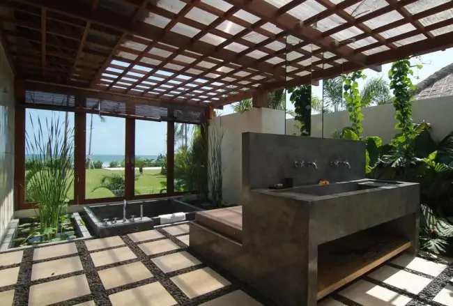 - Fully equipped open kitchen (meals are prepared at the back house where there is a complete professional kitchen)