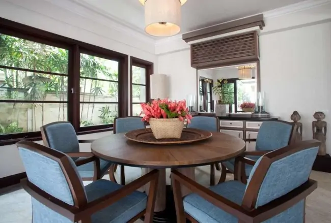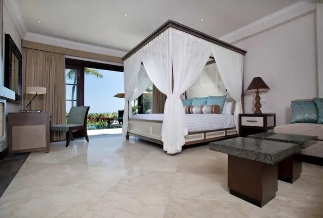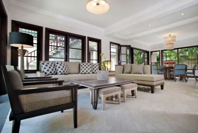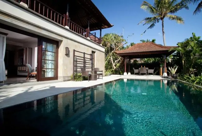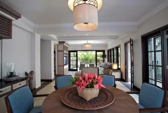 Sundara offers the comforts and amenities of a 5-star resort but in the private setting of a spacious luxury villa. The Villa underwent an extensive remodel in 2011 which brought a lightness and a contemporary look to the property. Casual yet luxurious, Sundara interiors are a well appointed combination of Tropical Modern meets Contemporary Colonial. Quality materials are evident throughout the Villa beginning with the elaborately carved teak entry doors that were commissioned by local artisans. Refined details are exemplified in the beige Java marble floors, limestone serpentine carved panels, custom cabinetry, and contemporary furnishing created in tropical hardwoods. A well-edited collection of Indonesian antiques and decorative objects gives the Villa a sense of place.