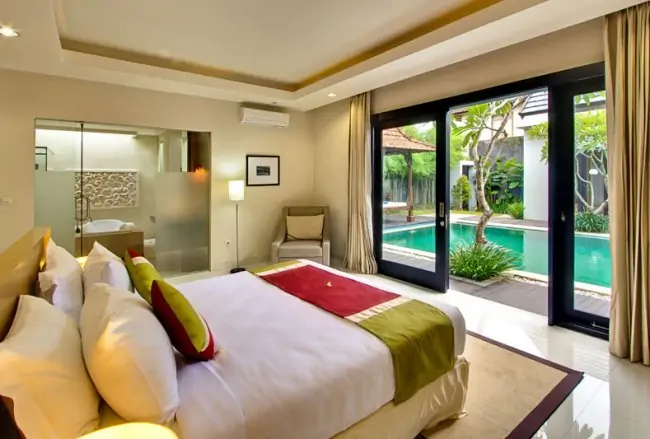 The villas is located 10 minutes drive from the legendary golden sands and surf of Kuta Beach and near to trendy Seminyak. These private pool villas offer relaxed holiday living combined with luxury, combining Bali’s renowned service traditions with the latest facilities. The Nibbana Villas means which embodies the Balinese traditional way of life and in Bali culture, equates to prosperity and wealth.
