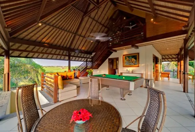 With stylish air-conditioned bedrooms and ensuite bathrooms hidden under traditional alang-alang and ironwood roofs you’ll be guaranteed a blissful night’s sleep as soon as your head hits the pillow. Those wishing to expend a bit more energy can notch up some laps in the pool, play a match on the tennis court, sink some balls on the billiard table or pedal their way through the neighbouring rice fields.