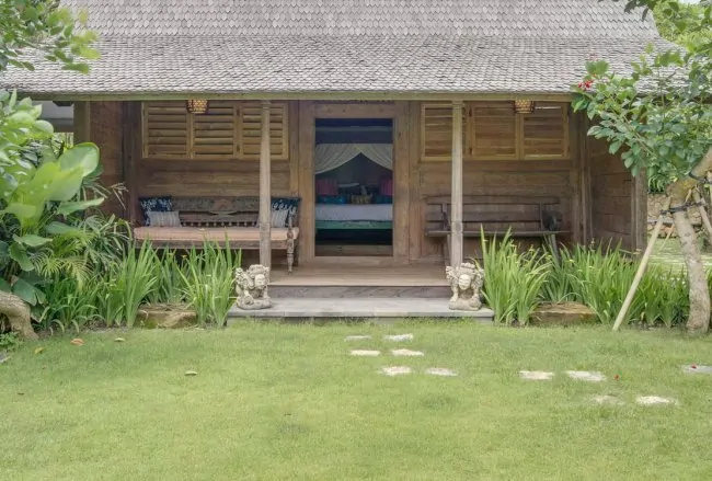 This is another wonderful example of a preserved traditional Indonesian timber house with a large day bed making it particularly suitable for kids, teens or friends sharing. This gladak is located on grassy lawns and it is surrounded by mature gardens. The ensuite bathroom has an outdoor shower.