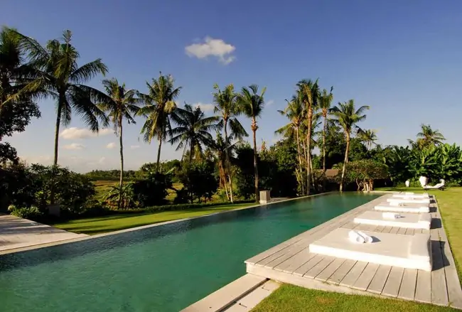 Villa Infinity Bali – Eight Bedrooms Luxury Villa with Cinema, great outdoors and infinite views of emerald green rice fields.