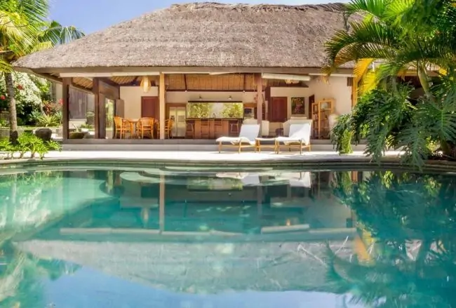 Villa Lalita stands as a captivating 2-bedroom retreat, seamlessly blending traditional Balinese design with contemporary comforts. Nestled within Akilea Estate on the Bukit Peninsula in southern Bali, this villa is one of five luxurious dwellings. Surrounded by lush greenery, flowering plants, and a picturesque lagoon-inspired swimming pool, Villa Lalita presents an ideal haven for a small family or a romantic couple. Its alang alang thatch-roofed architecture and minimalist interior design contribute to its charm, making it a perfect holiday home. For larger gatherings, weddings, or events, the villa can be rented in conjunction with other estate villas.
