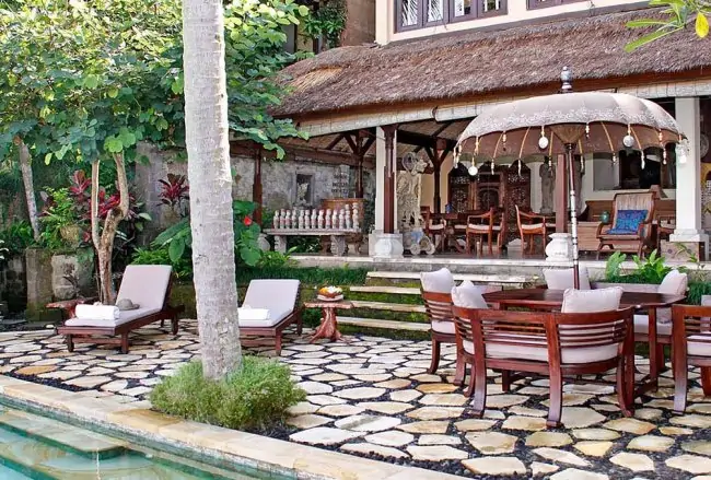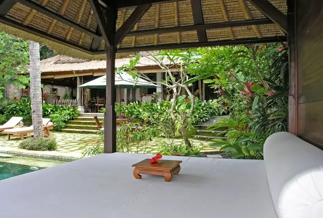 Villa Ria Sayan has its own natural stone and terrazzo in-ground swimming pool, surrounded by tropical plants. Beside the pool is a Balinese pavilion just perfect for morning coffee or those afternoon naps.