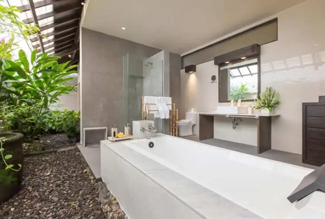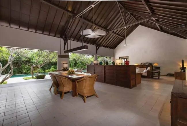 Ideal for accommodating up to six people, Roku Villa in Seminyak is perfect for large families or groups of friends seeking a family-friendly villa with a lush garden. The expansive open-plan living area provides a comfortable space to unwind and enjoy the surroundings, whether you’re relaxing on the couch or watching others delight in the pool. Guests can choose from a menu offering a variety of Asian and Western delights for breakfast, lunch, and dinner.