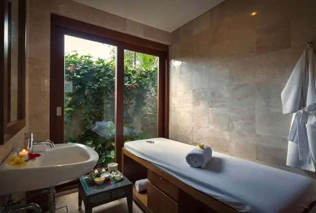 High-spec running machine (with Polar heart rate technology); stationery bike; weights and bench; separate massage room for in-villa treatments carried out by therapists on call.