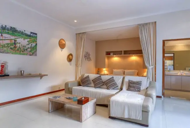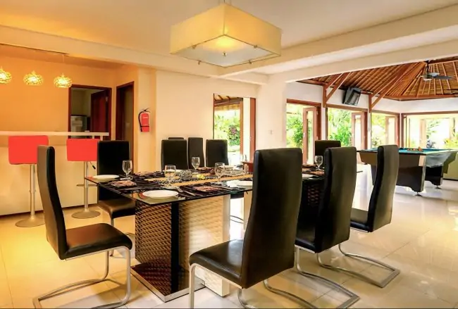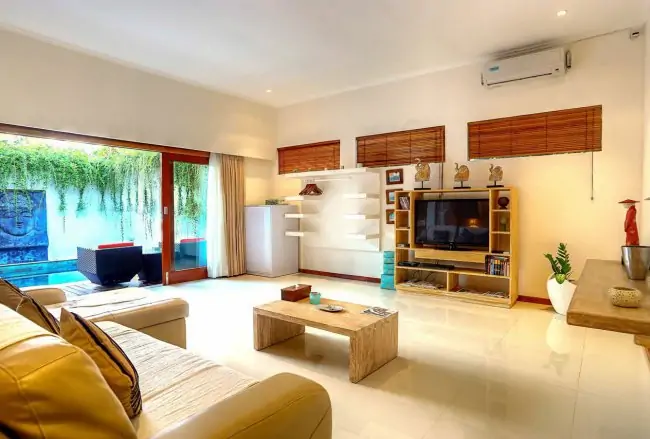 Whilst built in a traditional Balinese style externally , Villa Vie seminyak is furnished in modern style and equipped with air conditioning in every room, cable television, wi-fi and all you need to stay in touch with the world if that is your wish. This Seminyak holiday villa is the perfect alternative to busy hotels, which do not offer the privacy which most people want when they visit Bali. Once booked, the Villa is not shared with other guests and can be enjoyed in complete privacy and safety and all services.